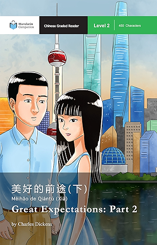 Great Expectations is hailed as Charles Dickens' masterpiece. A gripping tale of love and loss, aspiration and moral redemption, the story follows the young orphan Xiaomao (Pip) from poverty to a life of unexpected opportunity and wealth.In Part 2, Xiaomao (Pip) leaves his life of poverty behind to seek his fortunes in Shanghai and win the heart of the beautiful yet cold-hearted Bingbing (Estella). Xiaomao’s world is turned upside down when his mysterious benefactor is revealed and his deepest secrets are brought into the light of day. Mandarin Companion is a series of easy-to-read novels in Chinese that are fun to read and proven to accelerate language learning. Every book in the Mandarin Companion series is carefully written to use characters, words, and grammar that a learner is likely to know.Level 2 is intended for Chinese learners at a low intermediate level, equivalent to roughly two to three years of formal study. Most learners who have been able to fluidly read Mandarin Companion Level 1 should be able to read this book. This series is designed to combine simplicity of characters with an easy-to-understand storyline that helps learners grow their vocabulary and language comprehension abilities. The more they read, the better they will become at reading and grasping the Chinese language.Visit www.MandarinCompanion.com for updates on the newest titles and learning resources.